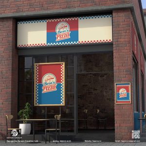 Tone màu chủ đạo được lựa chọn cho BESS’S PIZZA là sự kết hợp năng động của đỏ, xanh dương đậm và màu kem.