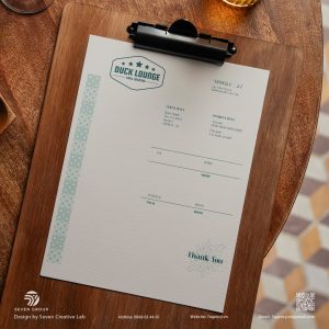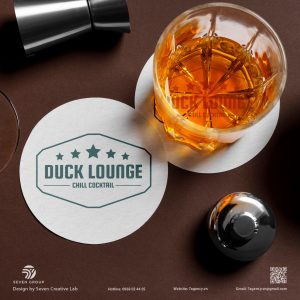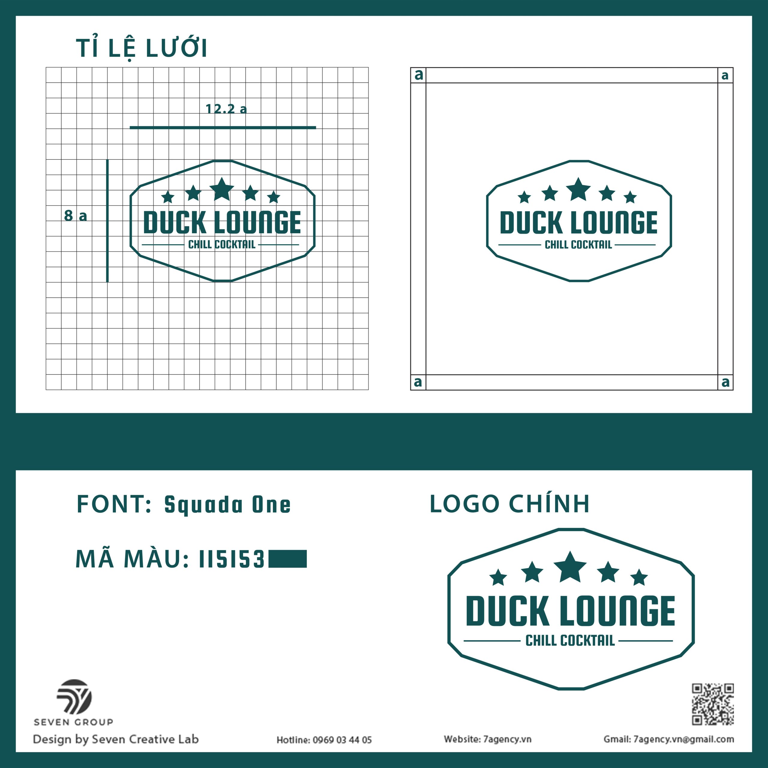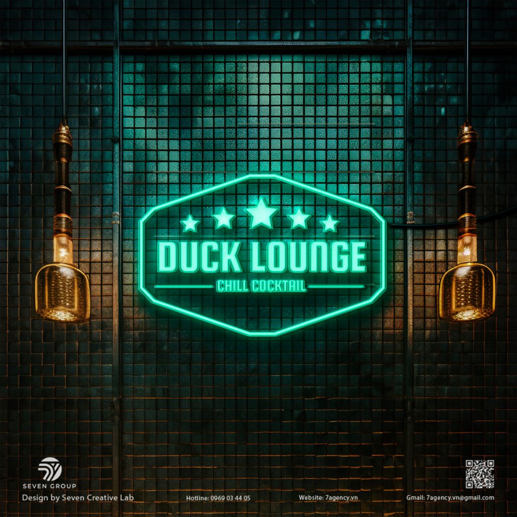 - Tên DUCK LOUNGE: Được đặt trong bố cục rõ ràng, sử dụng font chữ mang tính cổ điển và mạnh mẽ, làm nổi bật tên thương hiệu.