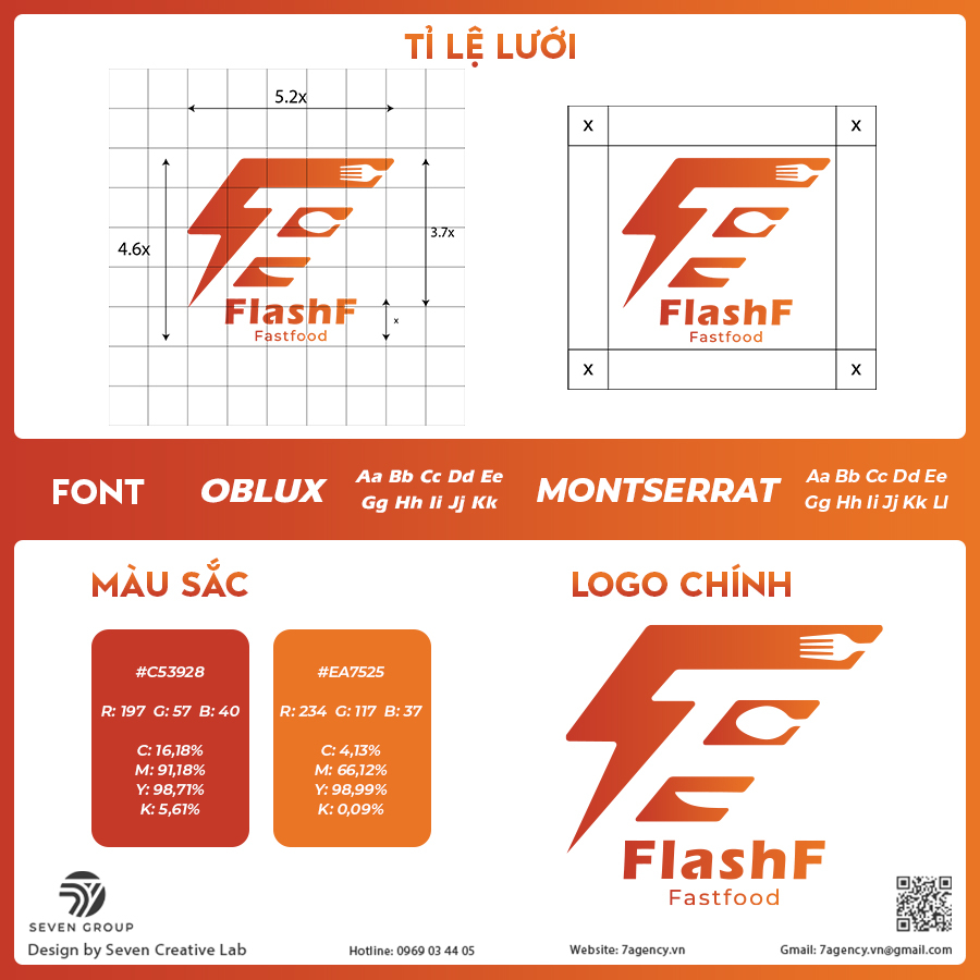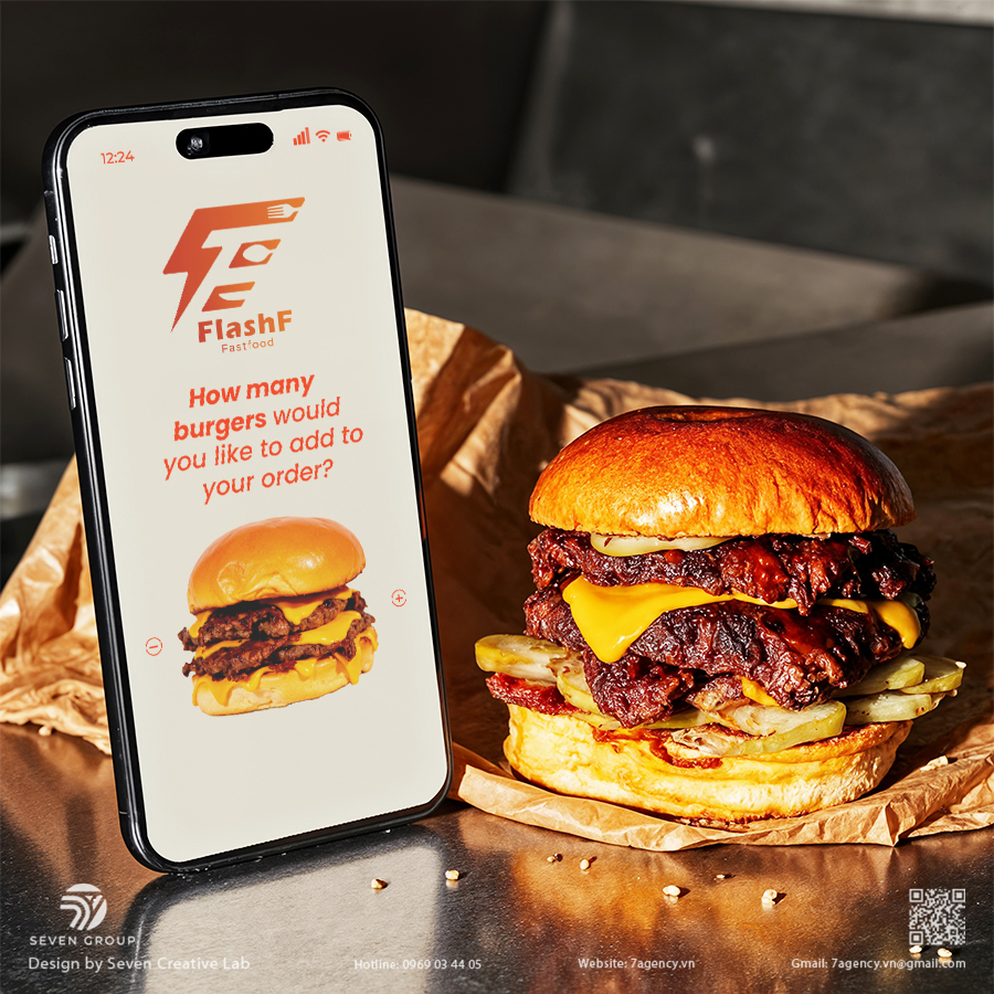 Thị trường thức ăn nhanh đòi hỏi sự nhận diện tức thì và truyền tải được sự tốc độ, năng lượng và hương vị. FLASH F cần một bộ nhận diện thương hiệu có thể:
