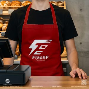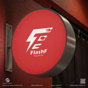 Logo của FLASH F là một biểu tượng Monogram được cách điệu hóa, kết hợp với các yếu tố tốc độ và ẩm thực.