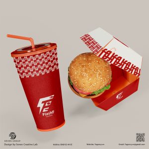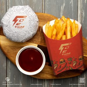 - Tối ưu trên bao bì: Thiết kế logo và họa tiết dễ dàng in ấn, nổi bật trên hộp burger, hộp pizza, và túi giấy.