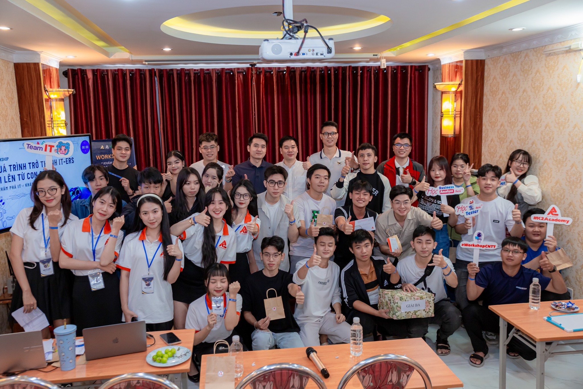 Seven Group thực hiện tổ chức sự kiện offline chuyên nghiệp cho K2 Academy với các hoạt động trải nghiệm, giới thiệu học viện và tương tác trực tiếp cùng học viên. Sự kiện được thiết kế bài bản, từ không gian, nội dung chương trình đến quy trình tiếp đón, mang đến ấn tượng sâu sắc và tăng độ tin cậy cho thương hiệu trong mắt khách tham dự
