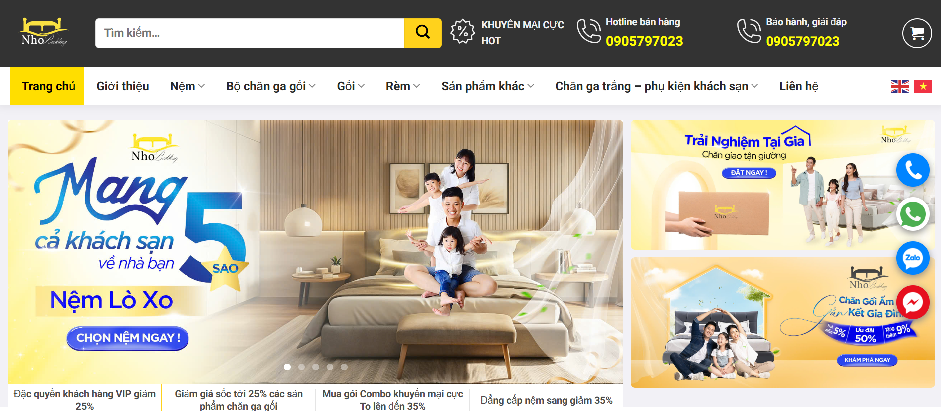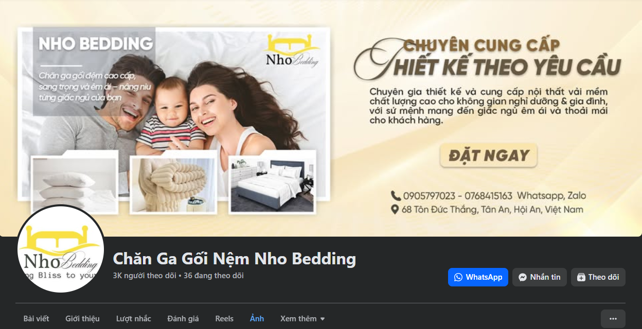 Fanpage Nho Bedding được Seven Group xây dựng nội dung theo định hướng chuyên nghiệp, tập trung vào giá trị sản phẩm, kiến thức giấc ngủ và hình ảnh thương hiệu. Hoạt động chăm sóc fanpage được duy trì đều đặn nhằm gia tăng mức độ tương tác và gắn kết với khách hàng