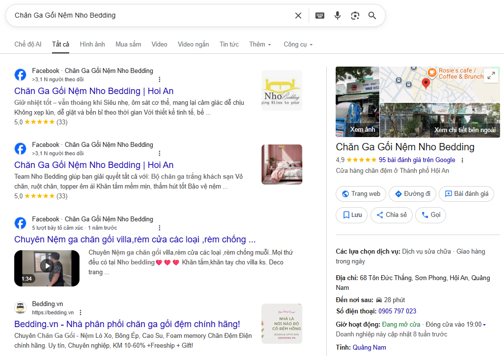 - Google Map của Nho Bedding được tối ưu và cải thiện rõ rệt về khả năng hiển thị, giúp lượng tìm kiếm thương hiệu và chỉ đường tăng hơn 60% so với giai đoạn trước triển khai.
