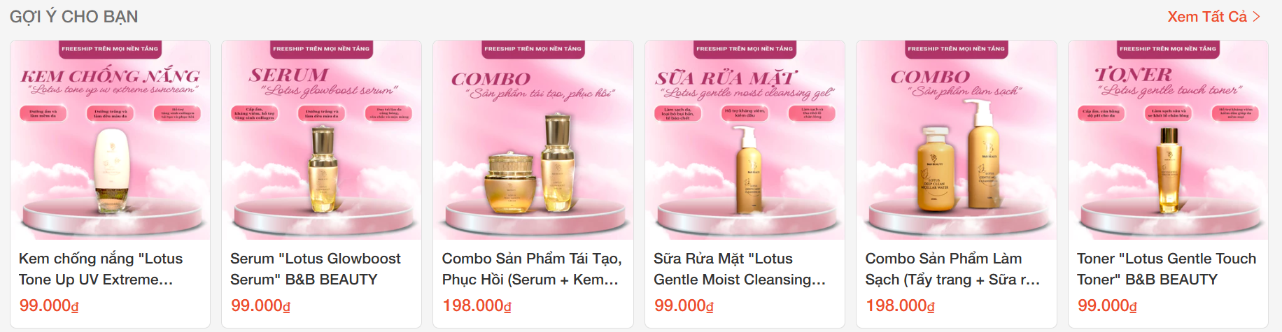 Shopee là kênh bán hàng trọng điểm của B&B BEAUTY, vì vậy Seven Group tập trung thiết kế hệ thống frame nhận diện dành riêng cho gian hàng và hình ảnh sản phẩm. Các frame được xây dựng đồng bộ với bộ nhận diện tổng thể, giúp sản phẩm nổi bật hơn trong môi trường cạnh tranh cao.