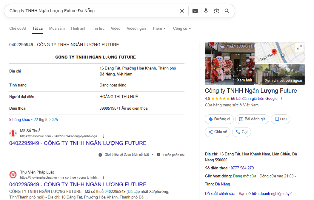 Google Map là một trong những kênh quan trọng giúp khách hàng dễ dàng tìm thấy đại lý Ngân Lượng Future khi họ tìm kiếm địa điểm mua bạc chính hãng, đặc biệt là khách hàng muốn đến trực tiếp cửa hàng tại Đà Nẵng. Việc tối ưu Google Map giúp tăng khả năng xuất hiện trong các kết quả tìm kiếm địa phương và cung cấp đầy đủ thông tin rõ ràng cho khách hàng.