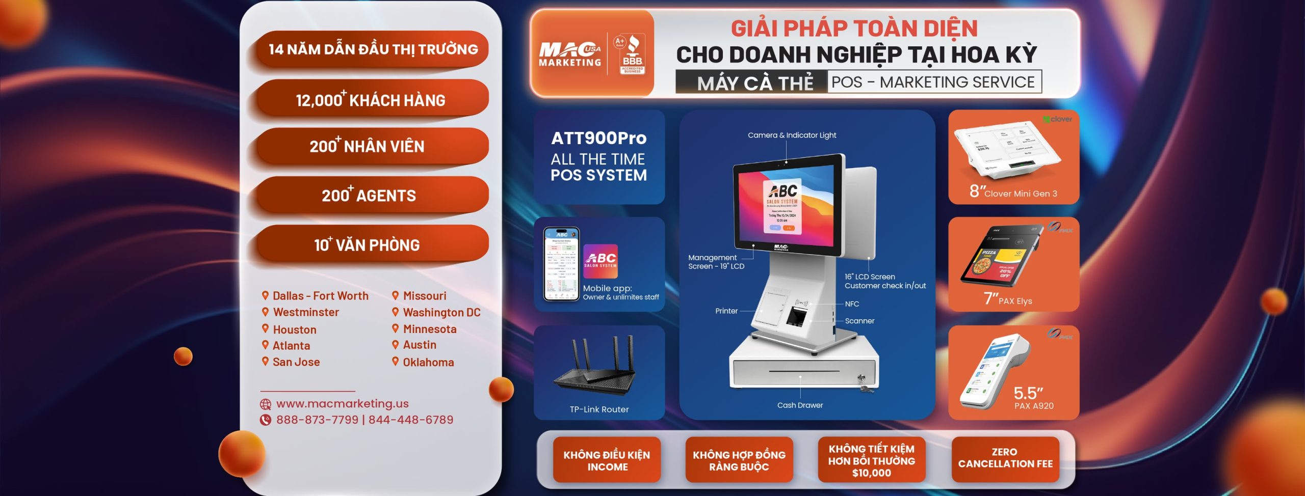 MAC USA là một thương hiệu chuyên cung cấp các giải pháp máy Pos tiên tiến, hoạt động tại thị trường Hoa Kỳ. Với sứ mệnh hiện đại hóa quy trình thanh toán và quản lý vận hành, MAC USA cung cấp các thiết bị và phần mềm tích hợp, giúp các doanh nghiệp, đặc biệt là các doanh nghiệp nhỏ và vừa, tối ưu hóa hiệu suất kinh doanh. MAC USA tập trung vào việc mang lại trải nghiệm người dùng liền mạch và đáng tin cậy, hướng tới mục tiêu trở thành giải pháp Pos hàng đầu được tin dùng trên toàn nước Mỹ.