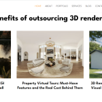 Website có phần dịch vụ được phân loại rõ ràng như 3D exterior rendering, interior rendering, CG animation, 3D virtual tours, 3D floor plan rendering… giúp khách hàng nắm bắt đầy đủ năng lực và phạm vi dịch vụ.